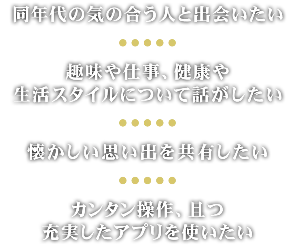 同じ趣味や興味を持つ人と情報を共有することで、熟年層の方々に新しいワクワクやドキドキを提供します。